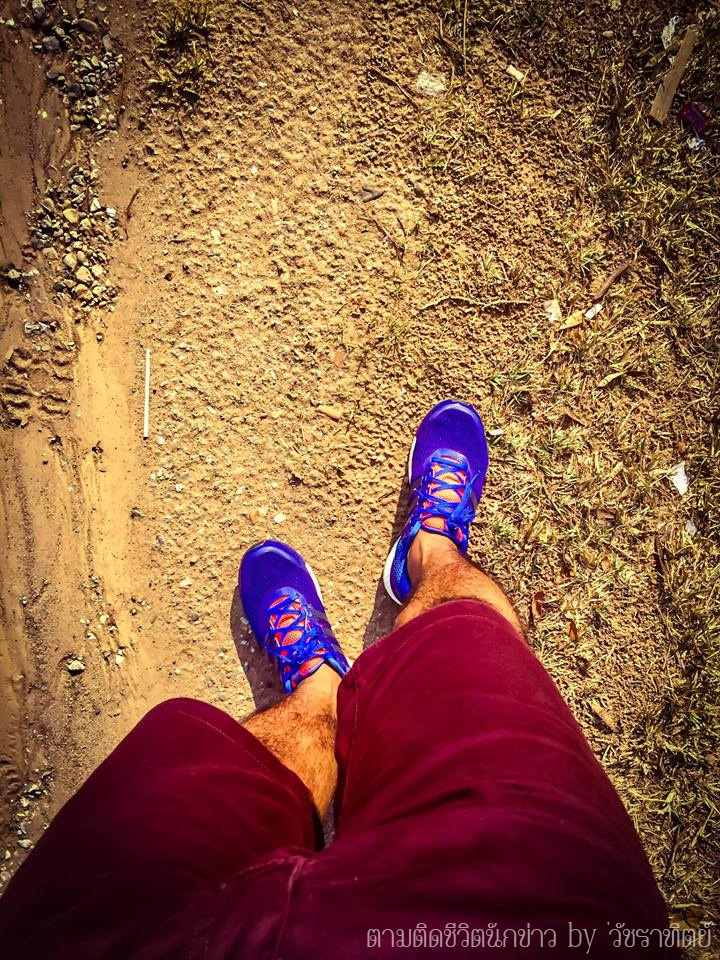 เห็นมั้ยว่าผมเตรียมการมาพร้อมสำหรับการเดินจริงๆ ครับ จัดรองเท้าวิ่งมาโดยเฉพาะเลย จะได้เดินได้แบบสบายๆ ไม่เมื่อยเท้า แต่ตอนนี้จะเกรียมละเหอะ