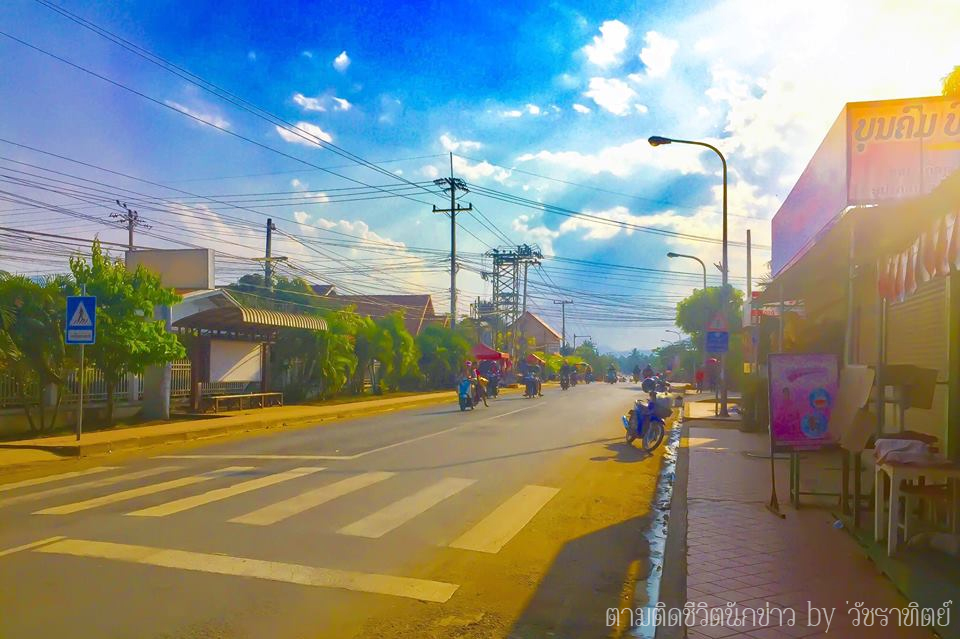 ทริปนี้ผมเริ่มต้นการเดินทางจากท่าอากาศยานนานาชาติหลวงพระบาง เพื่อไปยังเกสเฮ้าส์โดยวิธีการเดินเท้า ย้ำอีกครั้ง!! เดินเท้า อ่านไม่ผิดหรอกครั[ ผมจะเดินไปจริงๆ คือที่พักที่จองไว้มันไม่ไกลจากสนามบินมาก ระยะทางแค่เกือบๆ 5 กิโลเมตรเอง อีกอย่าง ผมว่าค่ารถเข้าเมืองมันแพงตั้ง 200 บาท ถ้าทั้งไปทั้งกลับรวมๆ ก็ 400 ร้อย ราคานี้ผมนั่งรถ ป.1 จากหมอชิต-พิษณุโลกได้เลยนะ ผมว่าไม่คุ้มค่าอ่ะ(เขียมสุดๆ) ทำให้ตัดสินใจเดินไป ท่ามกลางอุณหภูมิ 37 องศา แถมแบกเป้บนหลังอีกเกือบ 10 กิโลกรัม รวมขาตั้งกล้อง ชอบหาเรื่องลำบากให้ตัวเองตลอด 5555