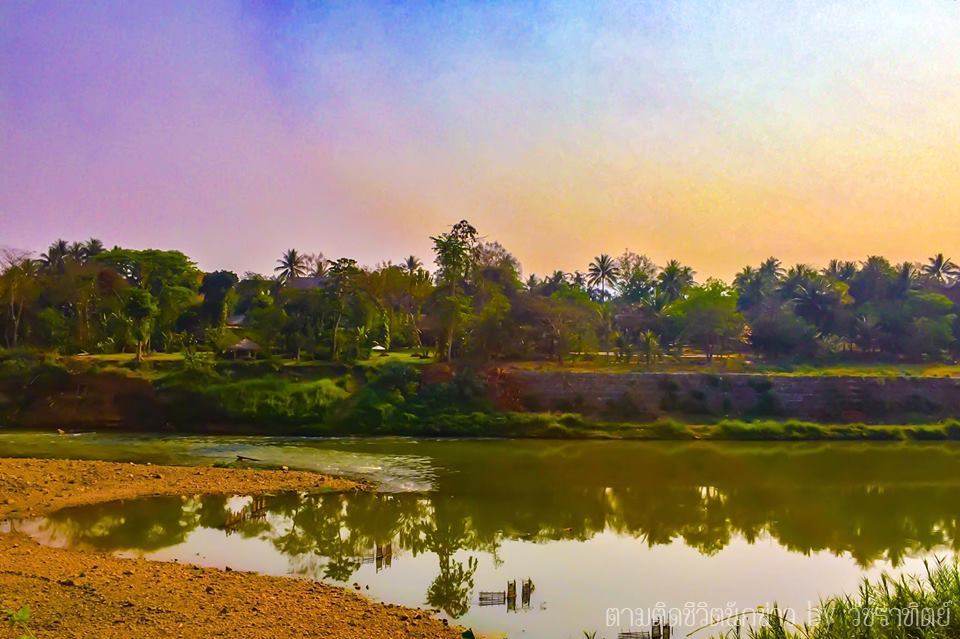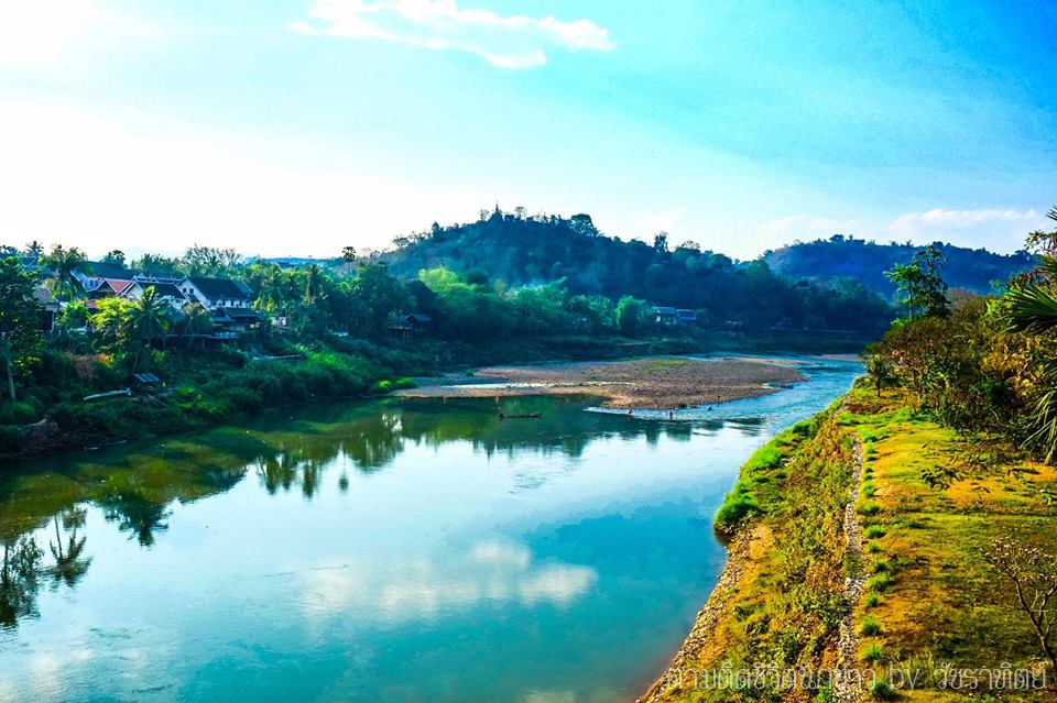 บรรยากาศของแม่น้ำคาน แม่น้ำสายนี้จะไหลไปบรรจบกับแม่น้ำโขง ถ้ามองดีๆ ตรงสันทรายกลางแม่น้ำจะมีคนมาอาบน้ำเล่นน้ำด้วยแหละ