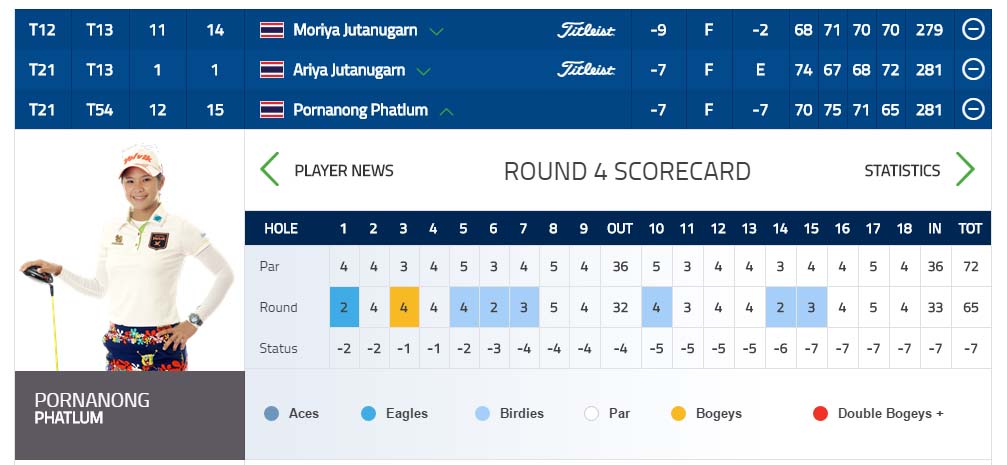 เมื่อคืนน้องแหวนมาท็อปฟอร์มทำได้ถึง -7 ถ้าวันแรก ๆ ตุนสกอร์ไว้ละก้อมีลุ้นเหมือนกัน