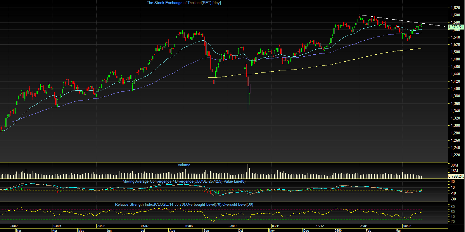 วันนี้มาติดตามกันต่อ ว่าดัชนีจะสามารถทะยานพุ่งทะลุ 1580 จุด ได้หรือไม่