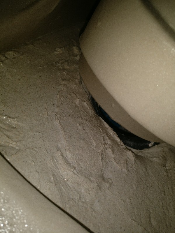 ได้ลองก้มดูที่ฐานก็เจอดังภาพ เหมือนยาแนวไม่สนิท ลองฉีดน้ำใส่ไหลลงไปหมดเลย