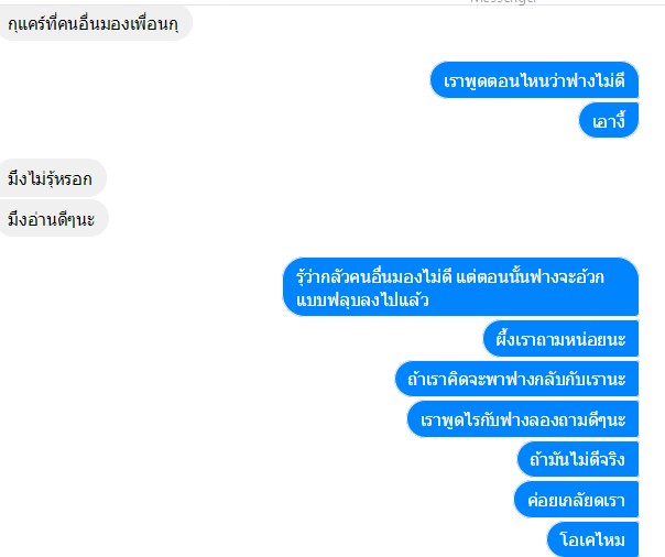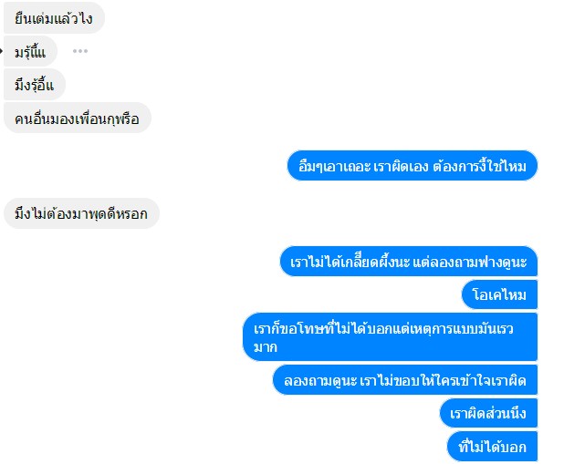 คือเรื่องมีอยู่ว่า ผมได้ไปเที่ยวผับแห่งนึงซึ่งผมรู้ว่าคนที่ผมคุยอยู่สมมุติว่าชื่อ ก นะครับ ผมรู้ว่า ก จะไป ผมเลยไปกับเพื่อน เพราะแค่อยากเจอเฉยๆ แล้วทีนี้ผมก็กินของผมปกติไปเรื่อยๆ ก ก็เวียนๆไปมาโต๊ะผมกับโต๊ะเพื่อนเขา แล้วทีนี้ผมก็เช็คโทรศัพท์เขาใช่ไหม เพราะเขาก็ชอบเช็คโทรศัพท์ผม เพื่อนเขาก็โมโหผมที่ว่าเช็คโทรศัพท์เพื่อนเขาหาว่าข้ามหน้าข้ามตา ผมก็ งง นะ แต่มันก็จบไป แล้วทีนี้ผมก็น่อยๆเขานิดหน่อย ผมก็อยู่โต๊ะ ผมแล้วปรากฏว่าเขาเมาหนักมากผมบอกพอแล้วไม่ต้องกิน ก ก็ยืนมึนๆอยู่ในโต๊ะผม แล้วสักพักเธอก็ล้มฟลุบมาทับตัวผมเพราะยืนไม่ไหวแต่ผมรับทัน แล้วบอกไม่ไหวแล้วจะอ้วก ผมก็จะเข้าห้องนำ้หญิงใช่ไหม คนอยู่เยอะมากกกกก ผมเลยเกรงใจผู้หญิง ผมเลยพามาอ้วกห้องนำ้ชาย แต่ผมมั่นใจว่าผมปกป้องเขาได้ ผมก็ให้เขาอ้วก แล้วบอกเขาว่าอ้วกเสร็จจะไปส่งหาเพื่อนเขาใช่ไหม แล้วเขาก็บอกจะอ้วกต่อ ไม่ไปก่อนเขาก็ล้วงคอนานอยู่พอสมควร แล้วเขาบอกปวดฉี่ผมพาเข้าห้องนำ้ แล้วผมอยู่ข้างหน้าประตูเฝ้าห้องนำ้ให้ แล้วเพื่อนเขาทักมาถามว่าเพื่อนเขาอยู่ไหน ผมก็บอกว่าอยู่กับผมในห้องนำ้ชาย เขาบอกทำไมไม่บอกกูเลยอะไร หลายครั้งแล้วนะข้ามหน้าข้ามตากู กูรู้เพื่อนกูเป็นไง ซึ่งผมโมโหมากผมก็ได้แต่อธิบายให้ฟัง เพราะผมไม่ชอบด่าผู้หญิง เขาหาว่าผมมอมเพื่อนเขา ทั้งที่ผมห้าม ก เองว่าอย่ากินพอแล้ว แล้วเขามาพูดแบบนี้ ผมทำไงได้บ้างผมไม่ชอบให้ใครมาเข้าใจผมผิดผมโมโหมาก จะสั่งเพื่อนให้เลิกคุยกับผมด้วย แต่ที่ผมรับไม่ได้สุดคือกลุ่มเพื่อนเขาทั้งหมดมาเข้าใจผมผิดนี้แหละ นี่ข้อความในแชทนะครับ กลับบ้านก็ทักมาด่าผมต่อ เป็นพวกท่านจะทำยังไงกันครับผมไม่ชอบโดนด่าฟรีซะด้วยสิ ปล.ภาษาวิบัติหน่อยนะครับในมือถือผมพิมพ์มือเดียวเพราะอีกมือลูบหลังอยู่