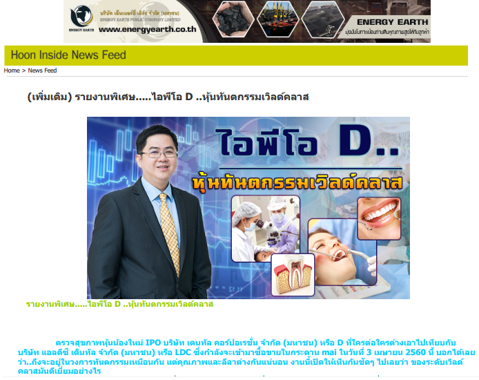 รายงานพิเศษ.....ไอพีโอ D ..หุ้นทันตกรรมเวิลด์คลาส