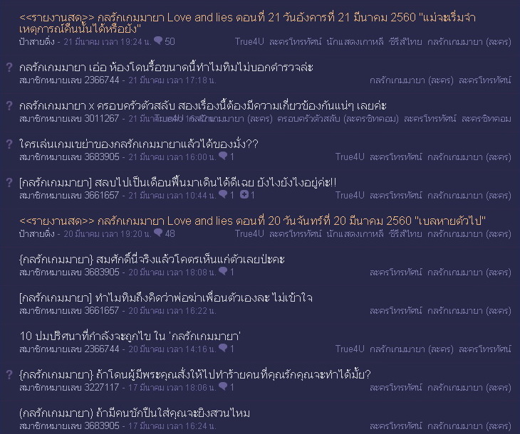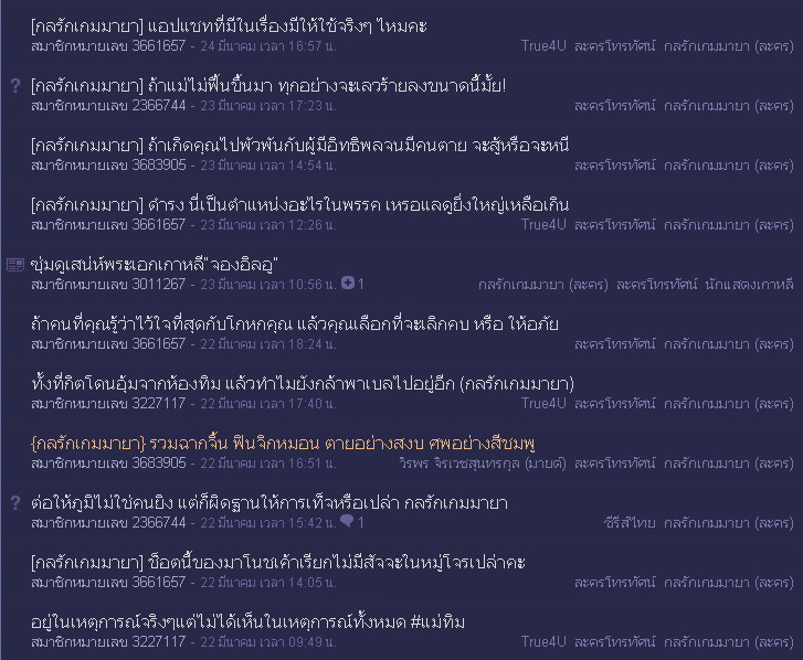 เป็นละครที่มีกระทู้เยอะนะ เมื่อเทียบกับช่อง กระแส เรทติ้ง