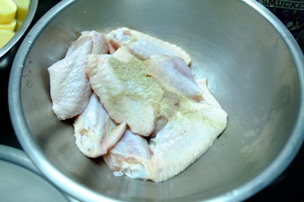 1. ปีกไก่ 1 แพค (หมักน้ำปลา เกลือ และน้ำตาลนิดหน่อย)