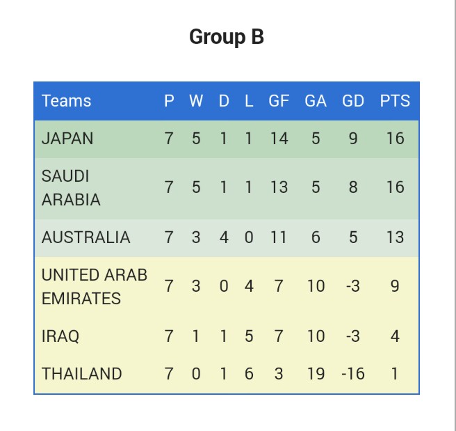 ฟุตบอลโลกรอบคัดเลือกโซนเอเชีย กลุ่ม B มี 20 แต้ม ไม่การันตีเข้ารอบสุดท้ายฟุตบอลโลกเสียแล้ว