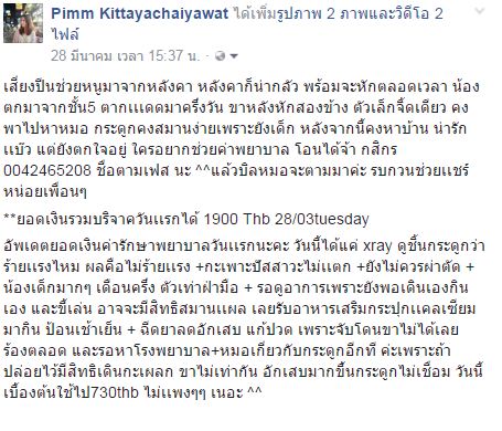 ใบเสร็จค่ารักษา ได้อัพเดตในลิ้งค์ fb ตลอด และจะมาอัพเดตในกระทู้ตลอดเช่นกันค่ะ