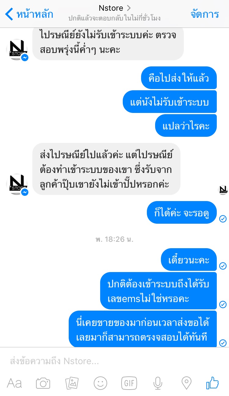 อยากสอบถามว่าในกรณีที่ได้เลขemsมาแล้วต้องรอเข้าระบบเป็นวันๆนี่มันมีด้วยหรอคะ? เพราะปกติเวลาดิฉันไปส่งของได้เลขemsมาก็สามารถเช็คได้ทันทีของเข้าระบบแล้ว รบกวนผู้รู้ด้วยค่ะ
