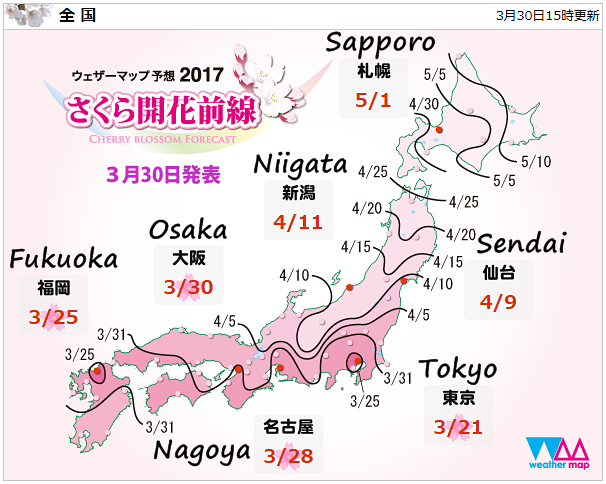 Update ตารางพยากรณ์ซากุระจ้า ! (30/03/2017)