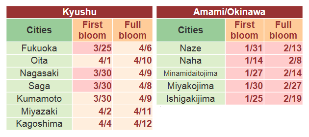 ※ ขอเขียนวันที่ตามวันที่พยากรณ์ออกนะคะ พยากรณ์ล่าสุด จะบานช้าลงไปอีกค่า Mito(Ibaraki) / Utsunomiya(Tochigi) / Maebashi(Gunma) / Kumagaya(Saitama) / Choshi(Chiba