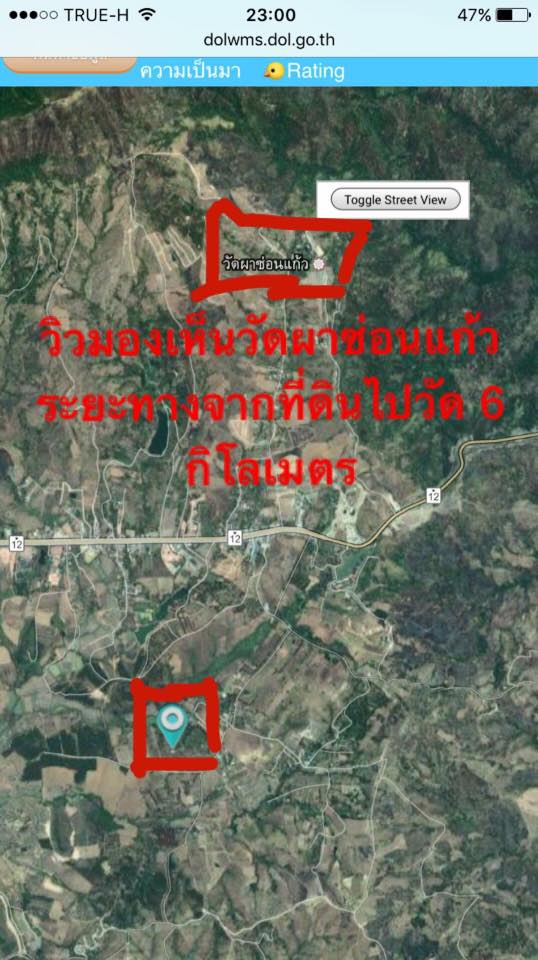 เป็นที่ดินบนเนินเขาสวยๆ มองเห็นวัดผาซ่อนแก้วชัดๆๆ อยู่ห่างจากวัดแค่ 6 กิโลเมตร ห่างจากถนนทางหลวงหมายเลข 12 3กิโลเมตร