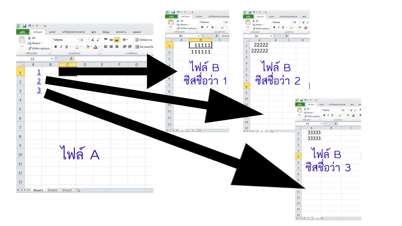 โดยถ้าคลิกที่ไฟล์ A ที่เลข1 แล้วให้ไฟล์ B ซีส 1 เปิดออกมา