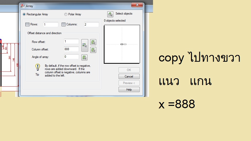 autocad ระหว่างเคลื่อน เม้า กำหนด ระยะ 22 ปรับ ค่า 22 ให้ไปทางซ้าย หรือ ทางขวา หรือ ตรงกลาง