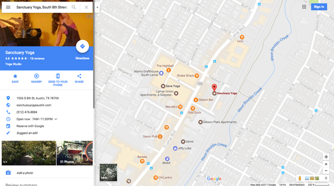 คุณสามารถดูห้องเรียนว่างได้จาก Google Maps และคลิกเพื่อดูตารางการเรียนการสอน และ การจ่ายเงินได้ ในเว็บไซต์ Reserve with Google คุณสามารถค้นหายิมใกล้เคียงกับสถานที่ที่คุณกำลังอยู่ ณ ปัจจุบัน มีการแนะนำข้อมูล และข้อเสนอต่างๆ เกี่ยวกับแพ็คเกจอีกด้วย