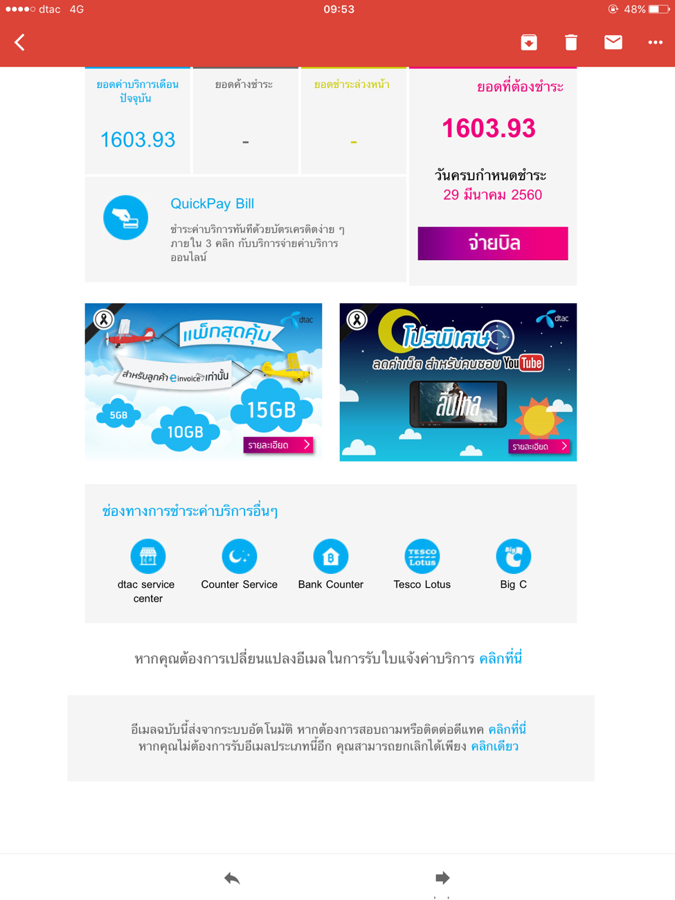 ทรูครับทำไมบิลค่าบริการถึงมาที่บ้านได้อีก