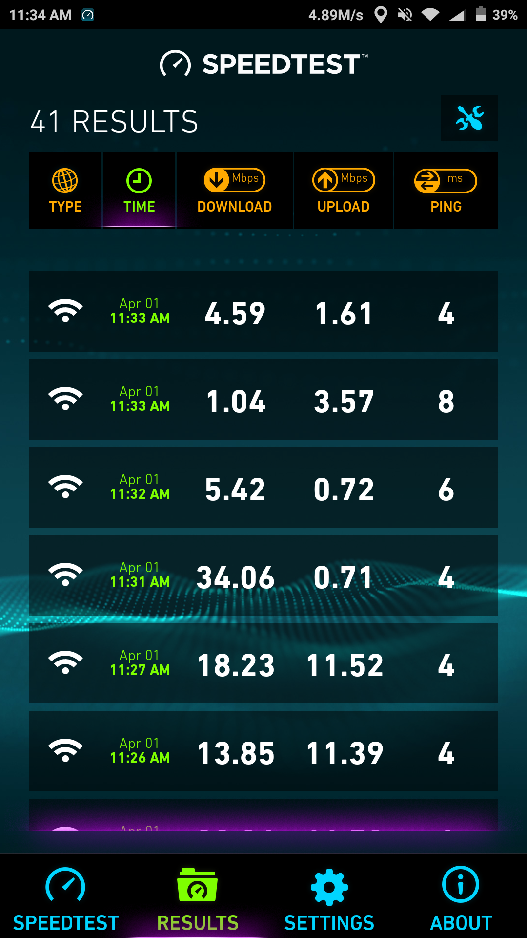 จากที่เห็นเป็นการเทสผ่าน wifi ที่ชั้น 1 โดยเทสที่จุดเดิมทุกครั้งครับ