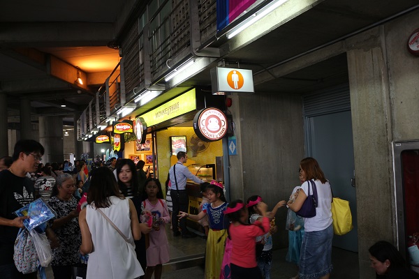 เรื่องของกินไม่ต้องเป็นห่วงครับมีร้านฟาสฟู้ดตลอดแนว ห้องน้ำก็มีเยอะอยู่ใกล้ๆกับประตูทางเข้าครับไม่ต้องห่วงว่าเด็กๆจะต้องอั้นเอาไว้