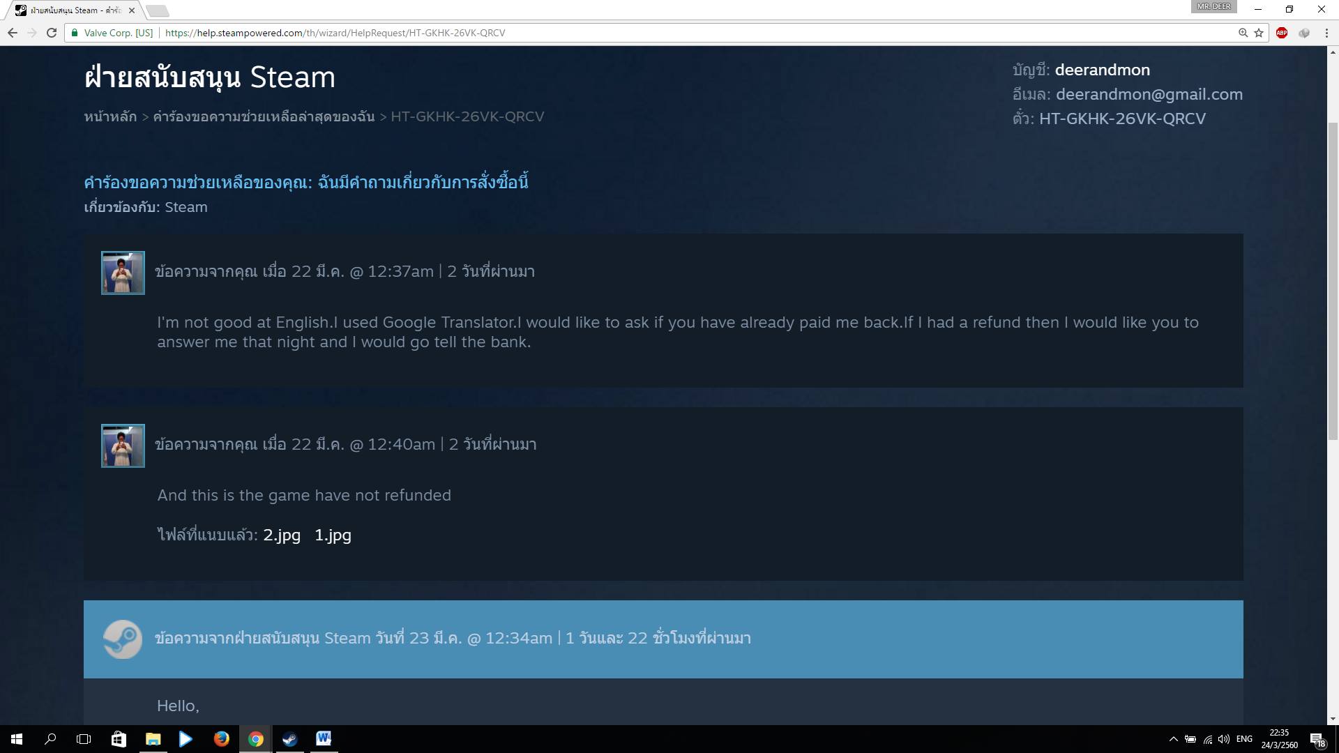 ครั้งที่สองไปก็บอกว่าบัญชีปกติให้ไปติดต่อ steam ว่าคืนมายัง ไปถามตอนปลายเดือนกุมภาพันธ์ (ธนาคารกรุงไทย สาขา ราชภัฏอุตรดิตถ์)