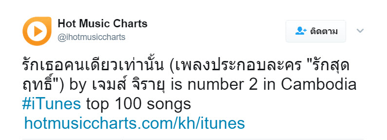 เพลง "รักเธอคนเดียวเท่านั้น" by เจมส์ จิรายุ is number 2 in Cambodia #iTunes top 100 songs