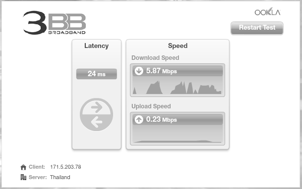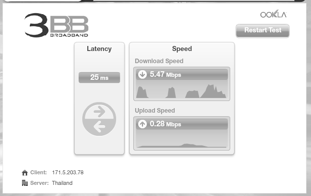 ที่บ้านเน็ตไม่เสถียรมาเป็นอาทิตย์แล้วค่ะ เทส Speed ได้ดังรูป