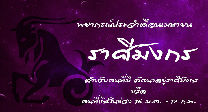 ชาวราศีมังกรในช่วงที่ผ่านมาก็นับว่าได้มีโอกาสดีๆ เข้ามาอยู่บ้างได้มิตรและเพื่อนฝูงช่วยเหลือ แต่ความสำเร็จนั้นก็ไม่ได้มาโดยง่ายก็พอเกิดลาภผลบ้าง รายจ่ายก็ยังคงสูงอยู่ ตั้งแต่ปลายเดือนมีนาคมที่ผ่านมาก็จะวุ่นวายกับปัญหาที่ต้องมาจัดการแก้ไขอยู่มากมายทั้งเรื่องตัวเองและครอบครัว สำหรับเดือนนี้ดาวพุธที่เป็นตัวแทนในเรื่องของความสำเร็จของชาวราศีมังกรจะโคจรพักรองศาในวันที่ 4 – 24 เม.ย. การติดต่อต่างๆรวมไปถึงการทำสัญญากับคนอื่นมีความล่าช้า และ ดาวศุกร์ที่เป็นตัวแทนการงานก็โคจรพักรองศาเช่นเดียวกัน ทำให้งานความถดถอย ชาวราศีมังกรค่อนข้างจะมีความกดดันจากครอบครัวเรื่องรายจ่ายเป็นส่วนใหญ่รวมไปถึงภาระของบ้านและรถ เดือนนี้จึงต้องอดทนค่อยๆแก้ไข ว่าจะหาเงินมาได้ก็ยังมีรายจ่ายรออยู่ หลังวันที่ 18 เม.ย. ดาวเสาร์ที่เป็นดาวประจำตัวจะโคจรเล็งกับดาวอังคารที่เป็นคู่ศัตรูกันต้องระวังอุบัติเหตุ และ การทะเลาะอย่างรุนแรงกับคนในครอบครัวในช่วงดังกล่าวไปประมาณ 45 วัน ในเรื่องราวของความรักคนที่โสดจะมีคนเข้ามาสัมพันธ์ในเรื่องของงานอยู่ไม่ขาดสาย ให้คนหาแบบมิตรที่ดีต่อกันจะทำให้มีการช่วยเหลือที่ดีสำหรับการงานอย่างชัดเจน ยังไม่ใช่จุดที่เหมาะกับความรักเท่าไรนัก สำหรับคนที่มีคู่ต้องเข้าใจกันให้มากและร่วมกันผ่านปัญหาไปด้วยกัน เป็นสิ่งสำคัญของชีวิตคู่ จะเห็นได้ว่าชาวราศีมังกรนี้จะค่อนข้างเจอปัญหาเข้ามามากมายในช่วงเวลา 2 ปีที่ผ่านมา ทุกอย่างที่เป็นไปนั้นคือบททดสอบของชาวราศีมมังกร ความสำเร็จคุณอยู๋ใกล้แค่เอื้อมต้องพยายาม มีวิริยะ อุตสาหะ จะส่งผลให้ประสบความสำเร็จในช่วงปลายปีนี้