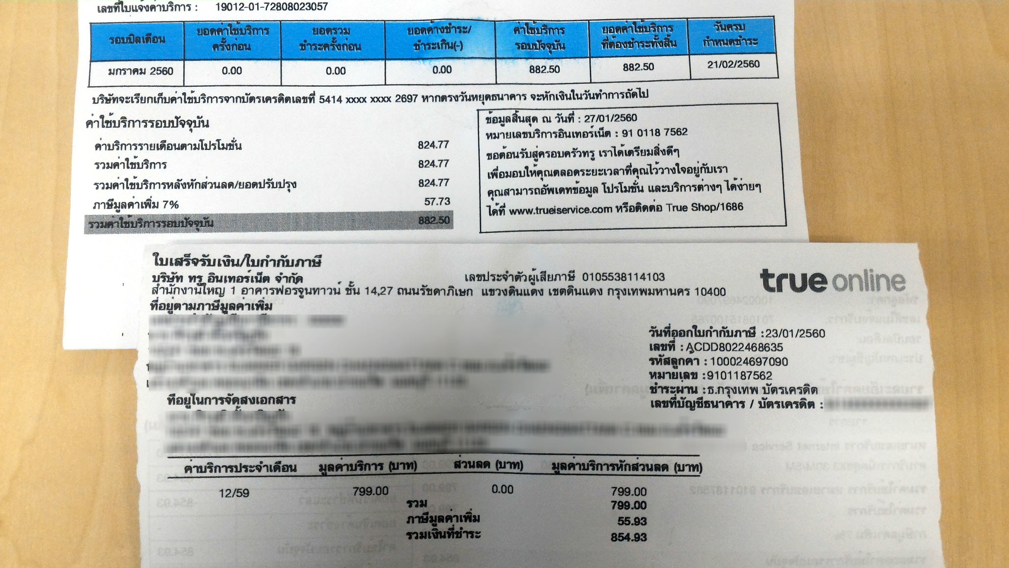 ไปอัพสปีด internet True ใบเสร็จมา 2 ยอด ในเดือนเดียวกัน