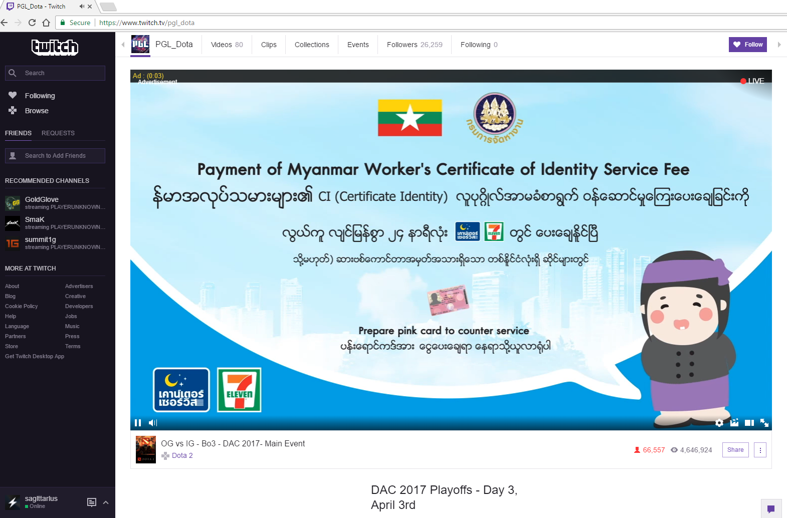 สงสัยจัง แรงงานเพื่อนบ้านในบ้านเราดู Twitch.tv กันเยอะหรอ ทำไมเค้ามาโฆษณาใน twitch เยอะเลย