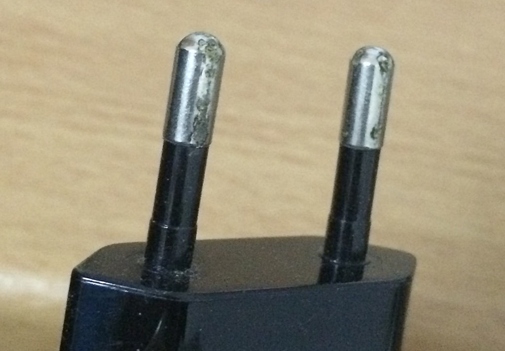 ปกติเสียบกับปลั๊กสามตา ใช้มาจะสองปี เพิ่งสังเกตเห็นรอย ไม่รู้ว่าเพราะปลั๊กสามตาที่ใช้อยู่ตอนนี้รึเปล่า