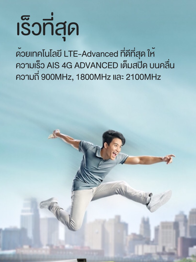 Update 10/04/2016 สำหรับ การให้บริการ 4G ของ AIS ด้วยเทคโนโลยี LTE-Advanced ให้ความเร็วเต็มสปีด บนคลื่น 900MHz,1800MHz,2100MHz โดยสามารถตรวจสอบพื้นที่การใช้งานเพิ่มเติมได้ที่ http://www.ais.co.th/4g/