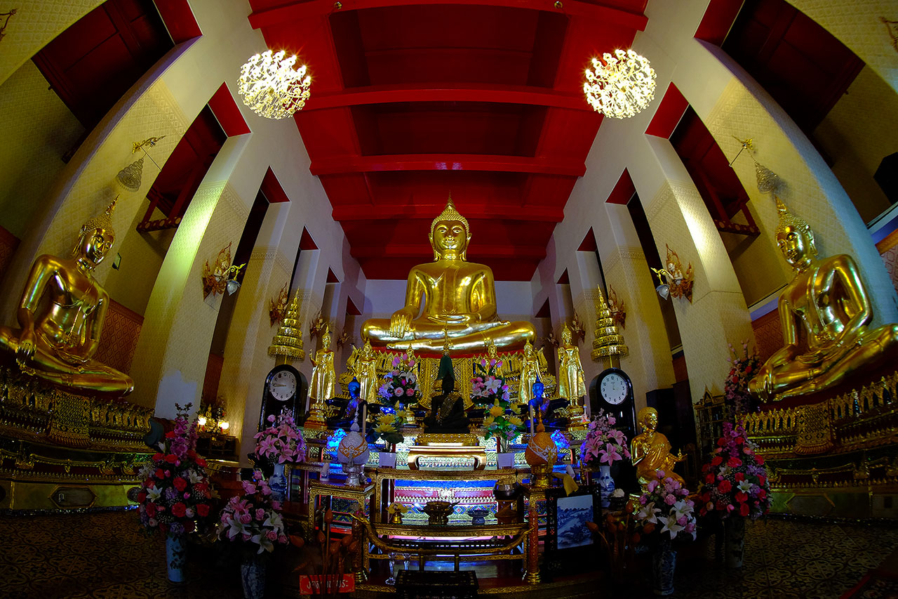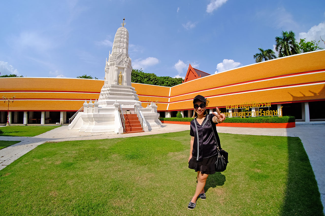 เราเดินตรงไปเรื่อยๆ จนสุดทางแล้วจึงเลี้ยวซ้ายผ่านหน้าวัดมหาธาตุยุวราชรังสฤษฎิ์ราชวรมหาวิหาร จะปล่อยผ่านไปเฉยๆ ก็ยังไงๆ อยู่ เรากับภรรยาจึงแวะเข้าไปไหว้พระสักหน่อยดีกว่า เดินทางเข้าประตูมาก็พบว่าการที่เราจะเข้าชมวัดนั้นสำหรับคนไทยเราเข้าฟรีไม่มีค่าใช้จ่ายใดๆ หากเป็นชาวต่างชาตินั้นคิดที่ 6 USD ต่อคน หรือก็ราวๆ 200 บาทเลยทีเดียว (คิดในใจ...ดีนะเราคนไทย) พอเข้ามาได้ก็พบว่าภายในวัดมีความงดงามตามแบบฉบับวัดไทย แล้วมีหรอที่เราจะไม่ถ่ายรูปเอาไว้