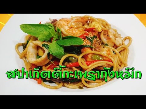 ผัดสปาเก็ตตี้กะเพรากุ้งหมึก