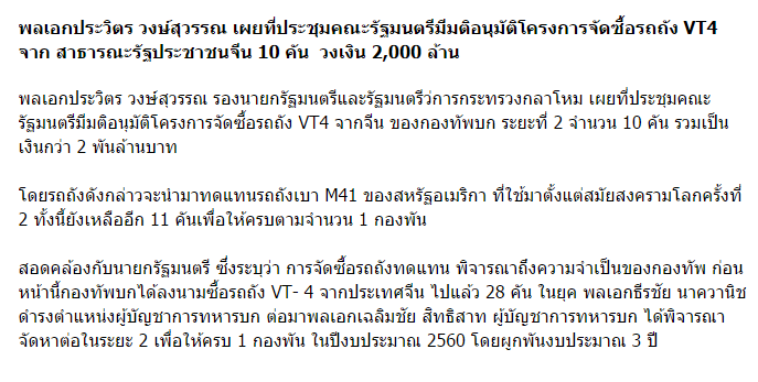 ครม. ไฟเขียว ซื้อ 'รถถังจีน VT4' อีก 10 คัน