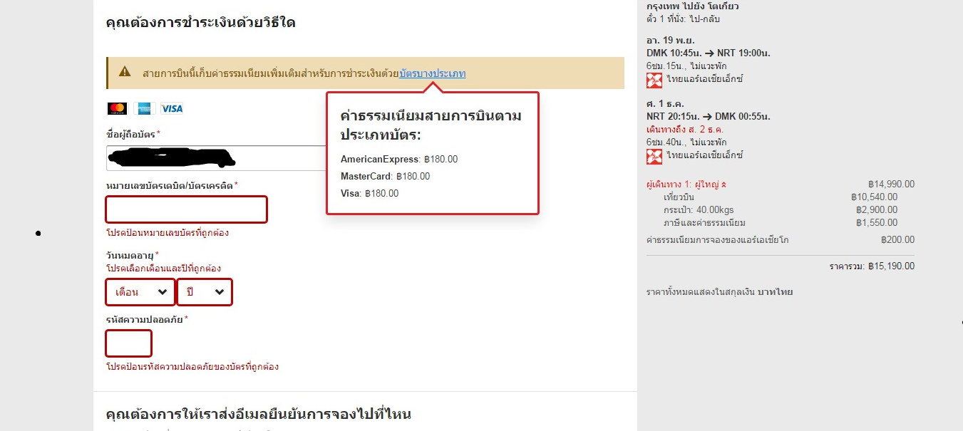 มีปัญหาการจองตั๋วเครื่องบินการบินไทย จากเวปไซท์ค่ะ