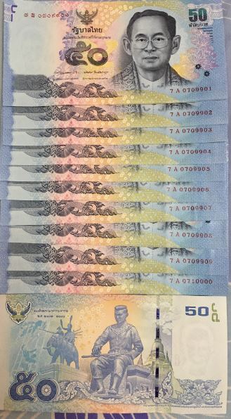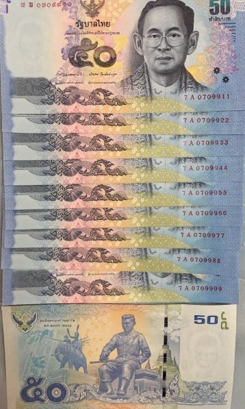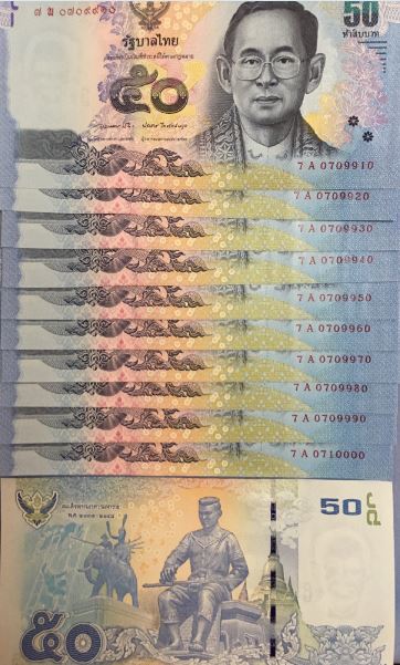 แบงค์50ใหม่เอี่ยมยกแหนบ ชุดเลข 7A 70790xx