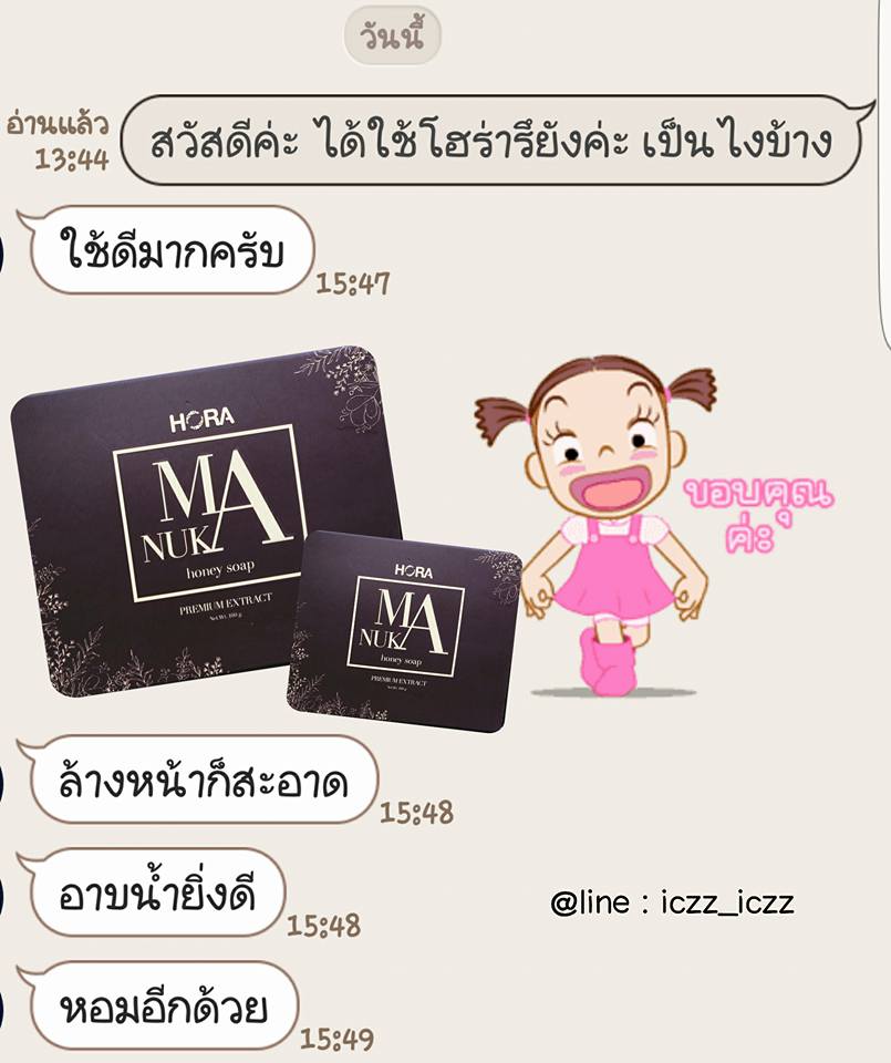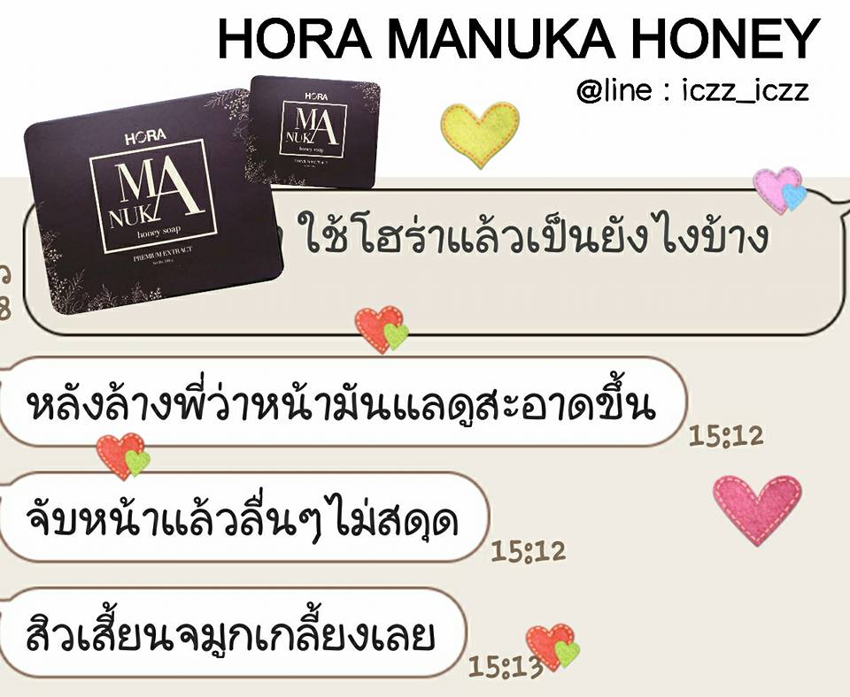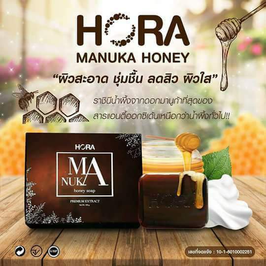 HORA Manuka honey soap สบู่โฮร่า สูตรอ่อนโยน ที่มีส่วนผสมหลักจาก " น้ำผึ้งมานูก้า " ซึ่งมีคุณสมบัติในการบำรุงและสมานผิว ฟองสบู่นุ่มเหมือนวิปครีม ไม่ทำลายผิว แลยังให้ความชุ่มชื้นแกผิวหน้า อีกด้วย