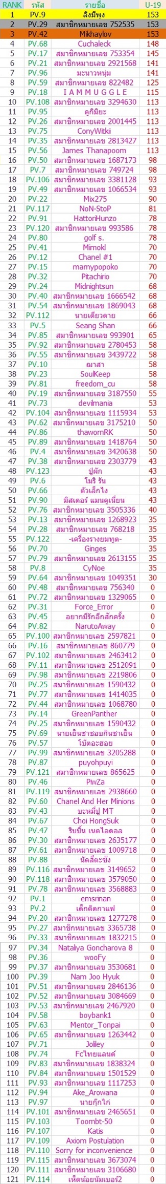 ผลคะแนน PV.8 U-19 มาแล้วนะคะ^^
