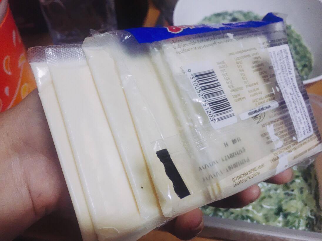 3.ชีสแผ่นที่ใส่กับขนมปัง หาได้ง่ายๆในบ้าน (เอาจริงๆเราก็เอามาใส่ๆแก้ขัดแบบประหยัดแหละค่ะ555)