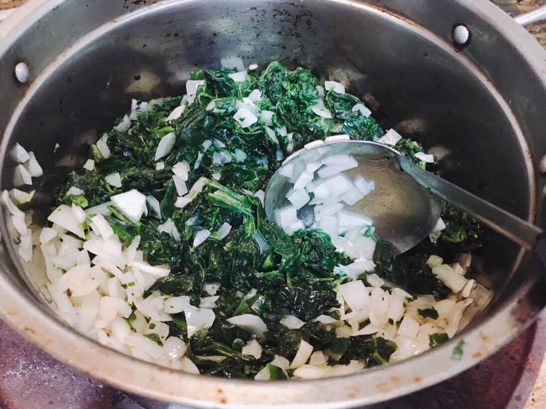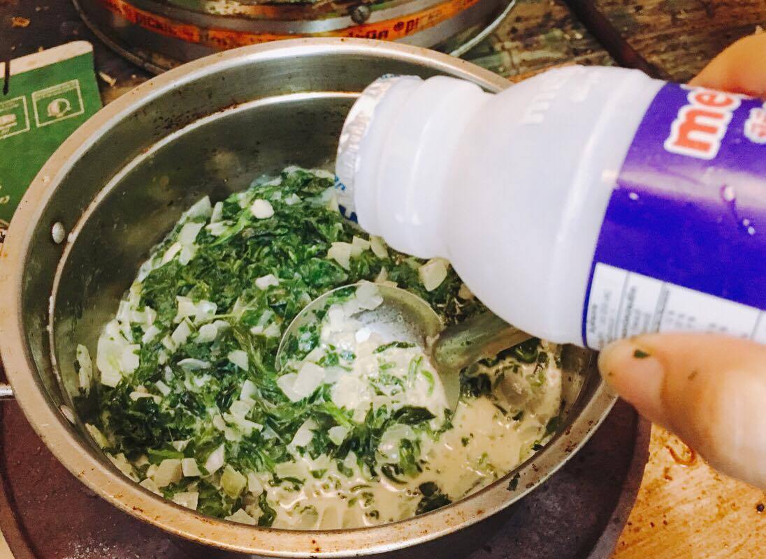 จากนั้นใส่ผักโขม พระเอกของเราลงตามเพื่อนๆไป