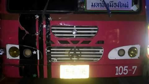 รถประจำทางสาย 105 (วิ่งจากถ.พระราม 2 แสมดำ -มหาชัยเมืองใหม่) ทะเบียน 15-6795กทม. ชนกับรถจยย. ฮอนด้า เวฟ สีดำ ทะเบียน 3กฐ-3112กทม. ผู้เสียชีวิต เป็นผู้หญิง 1ราย