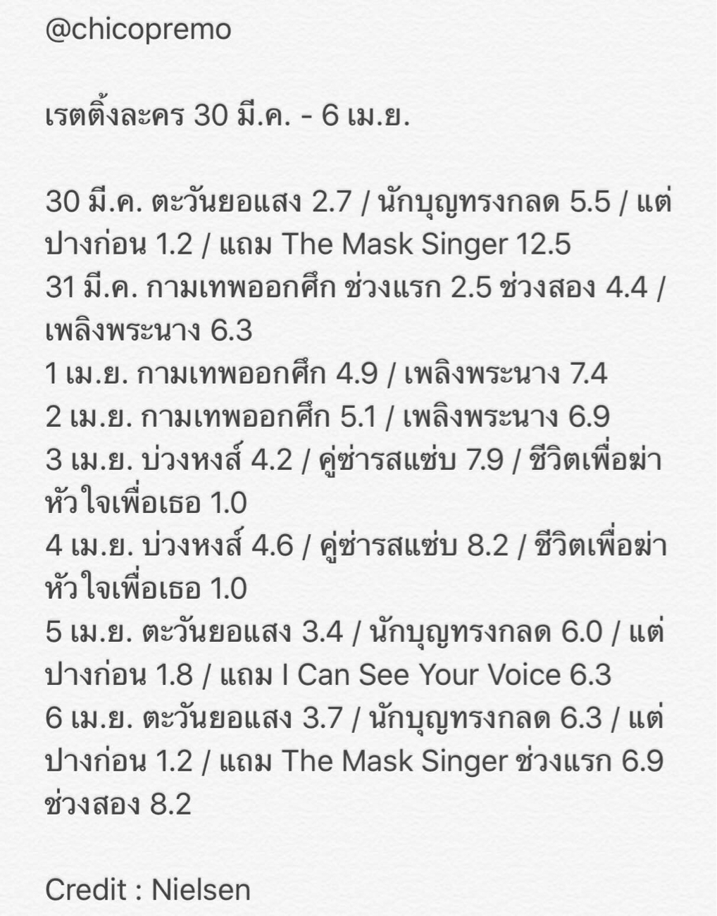 เรตติ้ง 30 มี.ค. - 6 เม.ย.