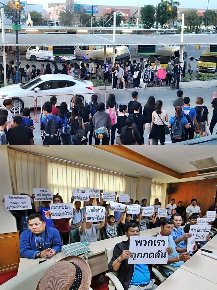 ปทุมธานี-รถตู้โดยสารสาธารณะกว่า 50 คัน ถือป้ายร้องผู้ว่าฯปทุมธานี ทหารจัดระเบียบไม่เป็นธรรม ครวญรถถูกยึดไปแล้วกว่า10 คันและไม่มีผู้โดยสารมาขึ้นรถในที่จอดใหม่