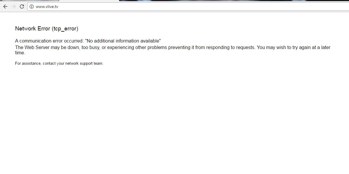 เมื่อวานจนถึงเมื่อเช้าเราสามารถเข้าเว็บ vlive ได้ แต่ตอนนี้เปิดแล้วเป็นแบบนี้ค่ะ แก้ไขยังไงให้เข้าได้เหมือนเดิมคะ