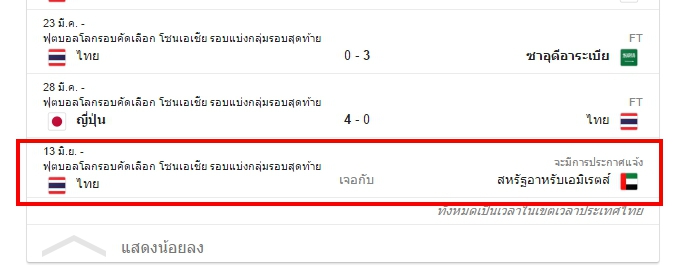 ไทย VS สหรัฐอาหรับเอมิเรตส์ 13 มิ.ย.