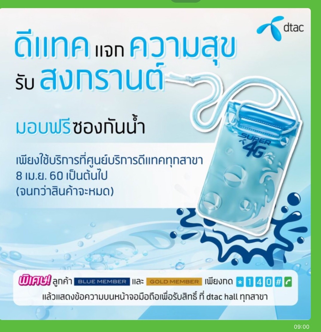 วันนี้ผมอ่านภาพดังกล่าวที่ส่งมาในไลน์ดีแทคว่า. เพียงใช้บริการที่ดีแทค. ในวันที่ 8 เมษา เป็นต้นไป. ก็จะแจกซองกันน้ำ. ฟรี