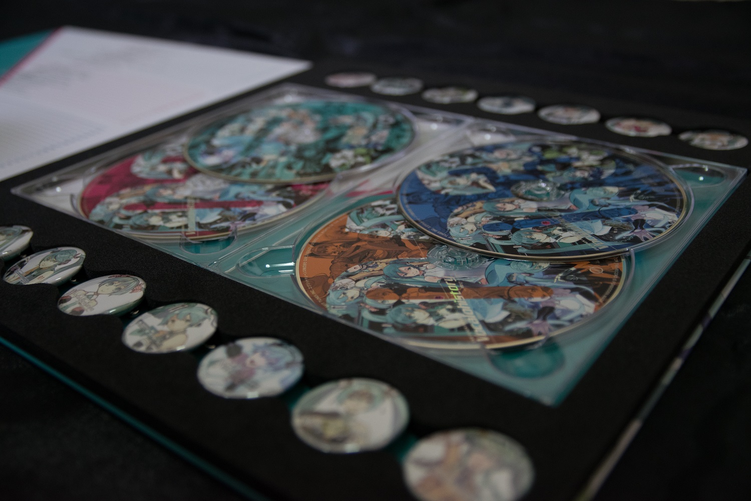 ฝั่งขวาเป็นCD 4 แผ่น โดยจะเป็น UHDCD และเข็มกลัดจำนวน 15 อัน