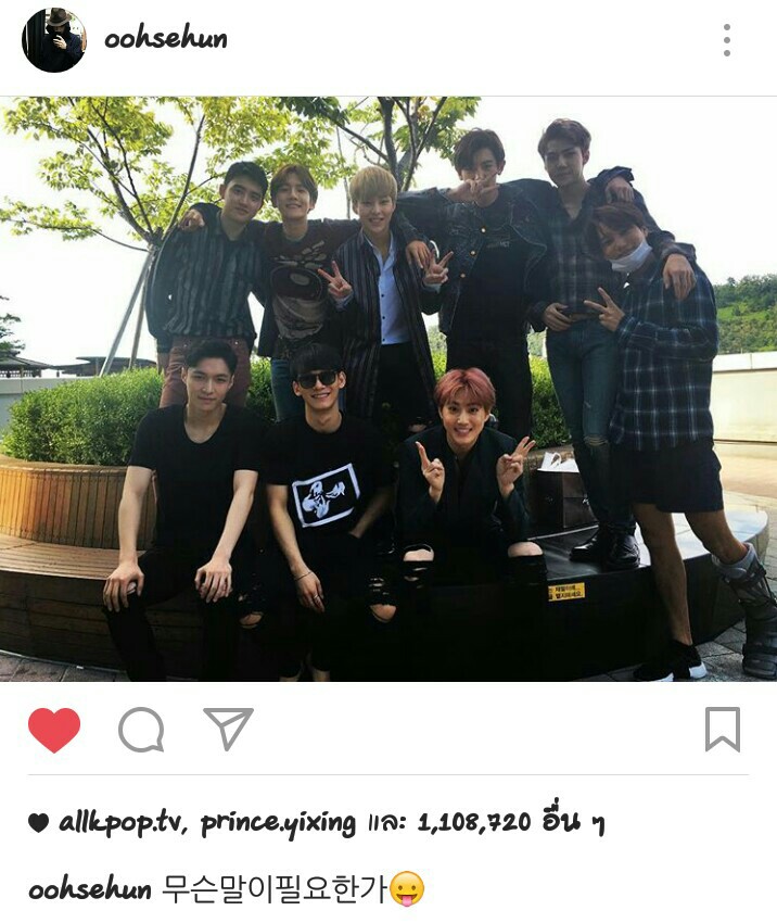 แต่ที่เรานอยด์ คือการที่มีอซอ.หรือเพจ บ้านบางบ้านที่อวยความน่ารักของเซฮุน มักเน่ในวง ถึงความเอาใจใส่วง ด้วยการโพสรูปลงอจ.ด้วยรูปที่มีมบ.วงครบตลอด ซึ่งมันก็จริง แต่!!! ทำไมคะ? เซฮุนโพสรูปที่มีมบ.ครบ 9 คนเยอะมากกกก (ก.ไก่ 88 ล้านตัว) แต่ทำไมเธอเอารูปที่เป็นเพียงบางรูป เป็นเพียงส่วนน้อยที่ในรูปมีเพียงมบ.แค่ 8 คนมาเป็นรูปประกอบแคปชั่นอันซึ้งน้ำตาซึมของเธอแบบนี้ล่ะ??