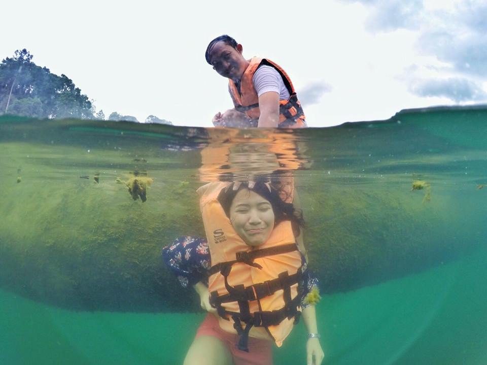 น้ำใสมาก มันสีเขียวแต่มันใสอ่ะ อย่างกับน้ำทะเล