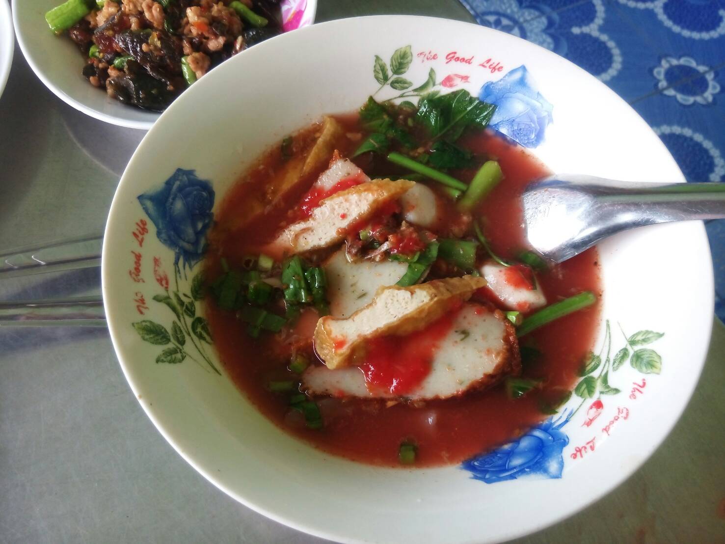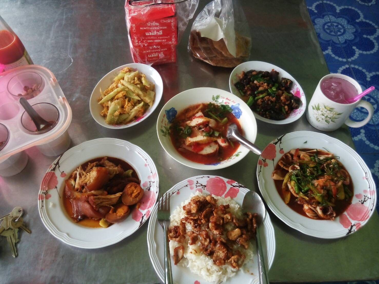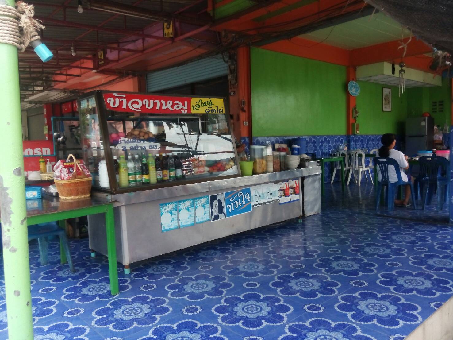 พอถ่ายรูปในวัดเสร็จ ก็ออกมาหาของกินข้างนอกวัด ตรงข้ามวัดมีตึกแถวก็เลยแวะดู มีร้านตามสั่งอยู่ร้านเดียว ก็เลยแวะกินดู