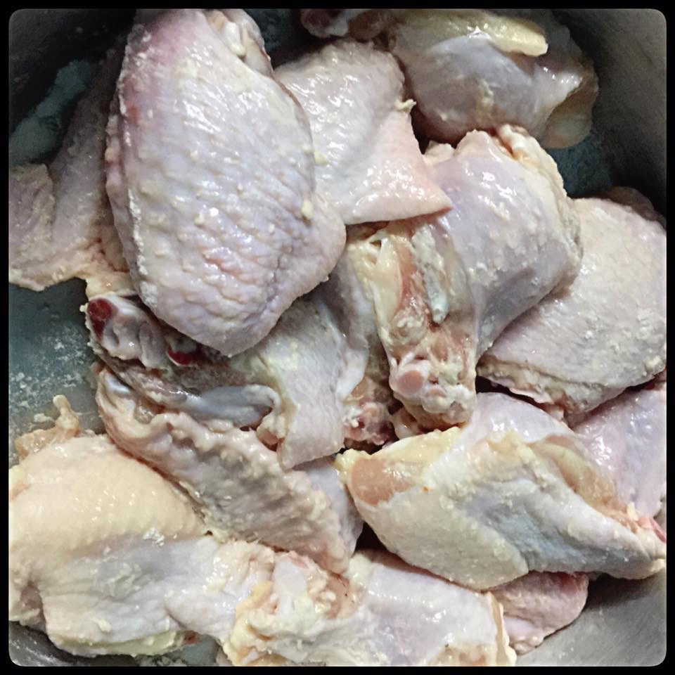 นำปีกไก่คลุกแป้งทอดกรอบ นำเข้าตู้เย็นประมาณ 20นาที